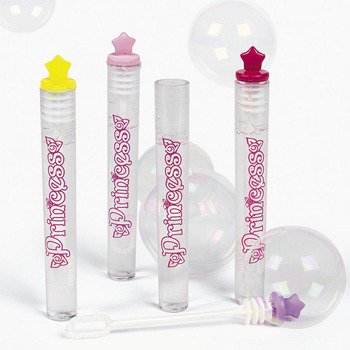These bubble bottles are perfect for Princess Parties, Baby Showers, Birthday Parties or any other use you can think of. Great as party favors, gifts and prizes too. Each plastic tube is 4" tall and contain .14 oz of bubble making liquid. Each order will contain 24 Princess star bubble bottles.